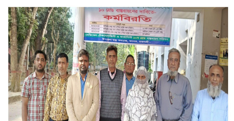 তানোরে মেডিকেল টেকনোলজিস্ট ও ফার্মাসিস্টদের অর্ধদিবস কর্মবিরতী পালন