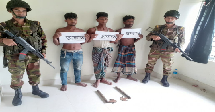 দেশীয় অস্ত্র সহ ৩ ডাকাতকে ধরে সেনবাহিনীর হাতে সোপর্দ করল এলাকাবাসী