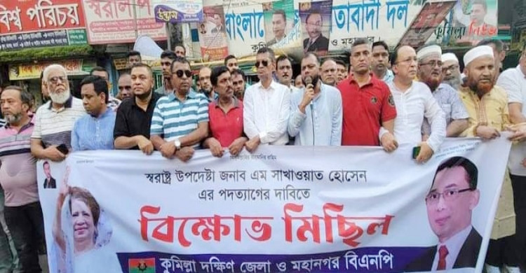 স্বরাষ্ট্র উপদেষ্টার পদত্যাগের দাবিতে কুমিল্লায় বিএনপির বিক্ষােভ