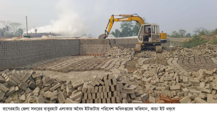 বাগেরহাটে অবশেষে অবৈধ ইটভাটায় পরিবেশ অধিদপ্তরের অভিযান, ভাটা মালিকদের না পেয়ে কাঁচা ইট ধ্বংস