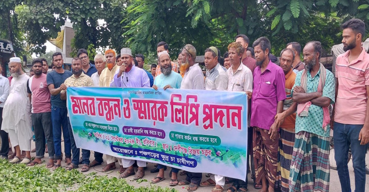 দেবীগঞ্জে কাঁচা চা পাতার ন্যায্য মূল্যের দাবিতে মানববন্ধন ও স্মারকলিপি প্রদান