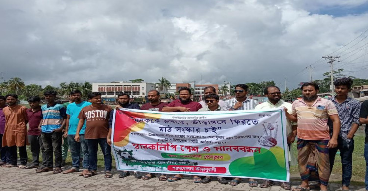 শরণখোলায় খেলার মাঠ সংষ্কারের দাবিতে মানববন্ধন