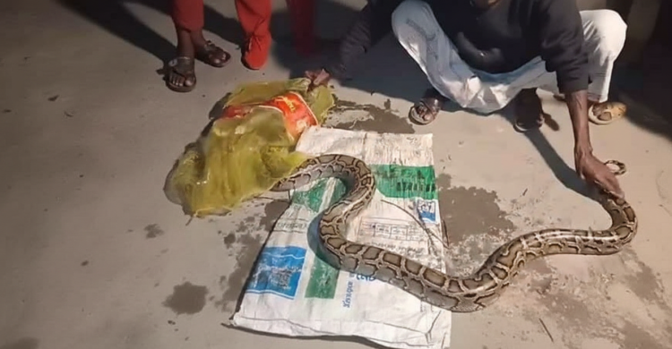 শরণখোলায় মাছের ঘের থেকে ১২ ফুট লম্বা অজগর উদ্ধার