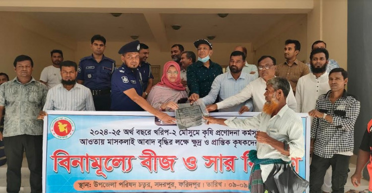 কৃষি প্রণোদনা কর্মসূচির আওতায় ফরিদপুরের সদরপুর উপজেলার ক্ষুদ্র ও প্রান্তিক কৃষকদের মাঝে বিনামূল্যে বীজ ও সার বিতরণ করা হয়েছে। উপজেলা প্রশাসন ও উপজেলা কৃষি সম্প্রসারণ অধিদপ্তরের আয়োজনে সোমবার (৯ সেপ্টেম্বর) এই বীজ ও সার বিতরণ করা হয়। অনুষ্ঠানে প্রধান অতিথি হিসেবে উপস্থিত ছিলেন সহকারী কমিশনার (ভূমি) রুবানা তানজিন।