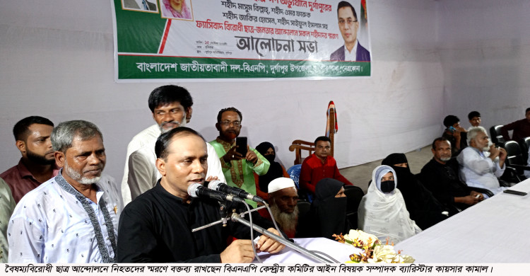 এ উপলক্ষে দুর্গাপুর উপজেলা ও পৌর বিএনপি আয়োজিত আলোচনা সভায় উপজেলা বিএনপির সভাপতি জহিরুল আলম ভূঁইয়ার সভাপতিত্বে এবং পৌর বিএনপির আহ্বায়ক আতাউর রহমান ফরিদের সঞ্চালনায় দুর্গাপুরের শহীদ মাসুম বিল্লাহ, ওমর ফারুক, জাকির হোসেন ও সাইফুল ইসলামসহ ছাত্র আন্দোলনে নিহত সকল শহীদের স্মরণে এক মিনিট নীরবতা পালন শেষে প্রধান অতিথির বক্তব্য রাখেন বিএনপির কেন্দ্রীয় আইনবিষয়ক সম্পাদক ও জাতীয়তাবাদী আইজীবী ফোরামের মহাসচিব ব্যারিস্টার কায়সার কামাল।