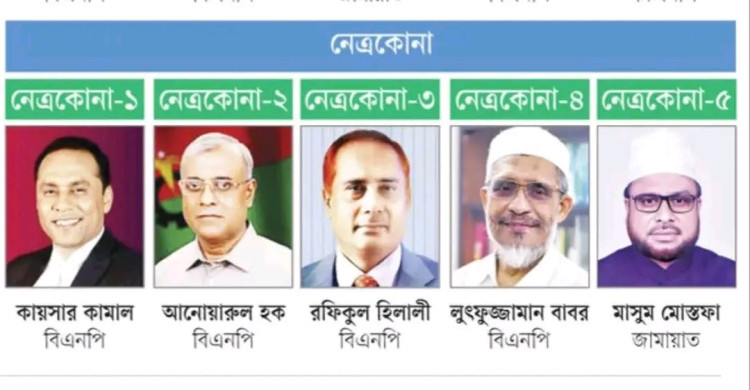 নেত্রকোণার পাঁচটি আসনের-চারটিতে বিএনপি ও একটিতে জামায়াতে ইসলামী জয়