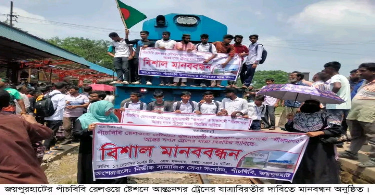 পাঁচবিবিতে আন্তঃনগর ট্রেনের যাত্রাবিরতির দাবিতে মানববন্ধন