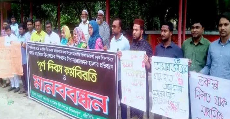পাঁচবিবিতে শিক্ষকদের পূর্ণদিবস কর্মবিরতি ও মানববন্ধন পালন