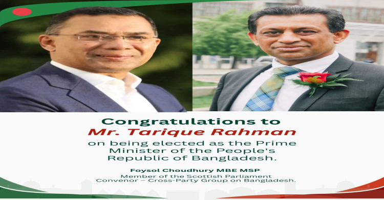 তারেক রহমানকে অভিনন্দন জানালেন ফয়সল চৌধুরী এমএসপি