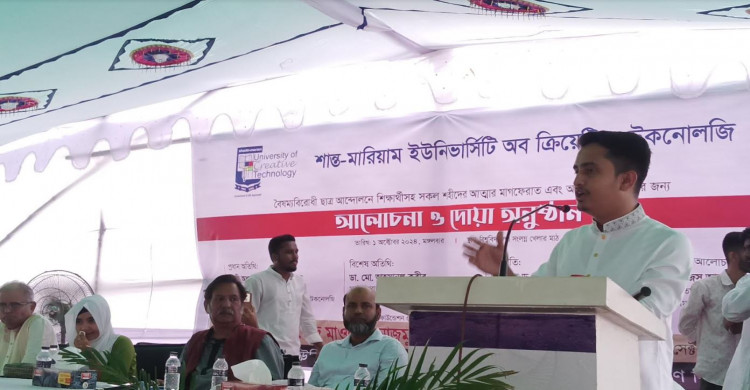মঙ্গলবার (১ অক্টোবর) দুপুর ১টায় শান্ত মারিয়াম ইউনিভার্সিটি সংলগ্ন খেলার মাঠে দেশব্যাপী বৈষম্যবিরোধী ছাত্র আন্দোলনে সকল শহীদের আত্মার মাগফিরাত ও আহতদের দ্রুত সুস্থতা কামনায় আলোচনা ও দোয়া অনুষ্ঠানের আয়োজন করেন শান্ত মারিয়াম ইউনিভার্সিটি অব ক্রিয়েটিভ টেকনোলজি।