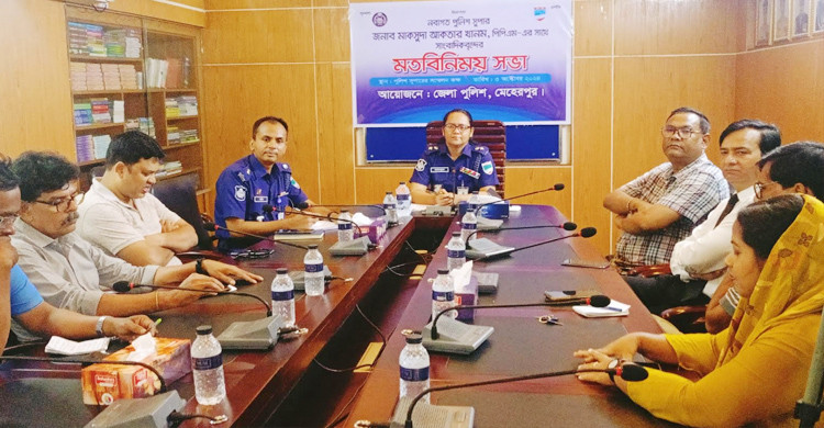 মতবিনিময় সভায় মেহেরপুরের সমসাময়িক আইনশৃঙ্খলা বিষয়ে আলোচনা করেন জেলায় কর্মরত প্রিন্ট ও ইলেকট্রনিক মিডিয়ার সাংবাদিকবৃন্দ।