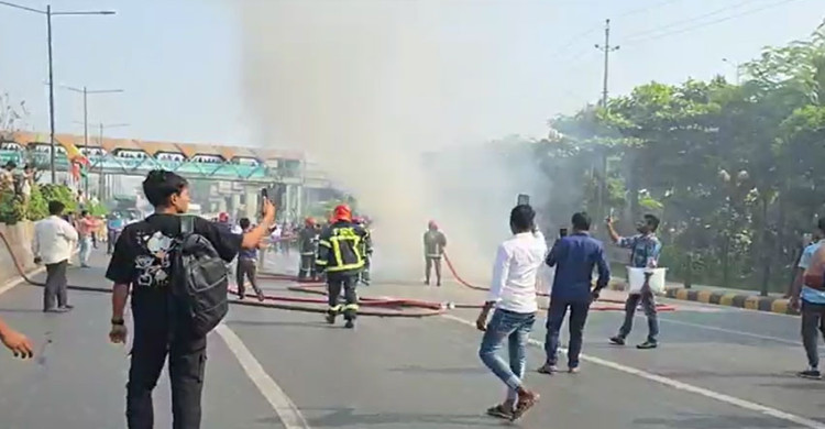 কুর্মিটোলা গলফ ক্লাবের সামনে গাড়িতে আগুন