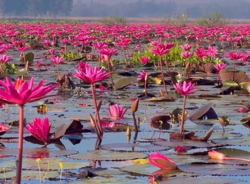 হাইল হাওরের ‘লাল শাপলা বিল’ দেখতে শ্রীমঙ্গলে পর্যটকদের ভিড়