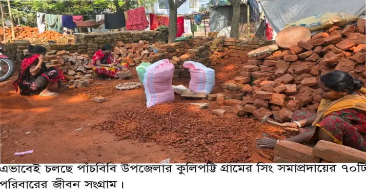 পাঁচবিবির ৭০ পরিবারের জীবন চলে ইটের খোয়া ভেঙ্গে
