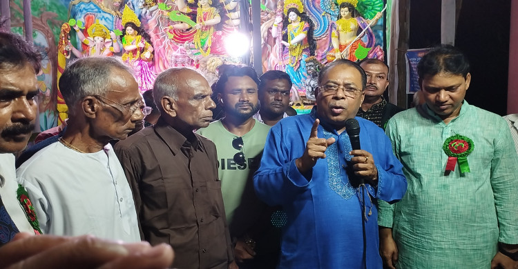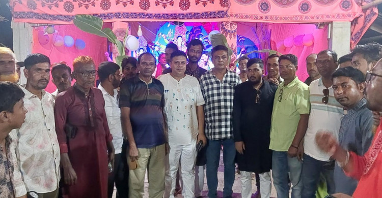 মোরেলগঞ্জে স্বেচ্ছাসেবক দল নেতা সাইফুলের পূজা মন্ডপ পরিদর্শন