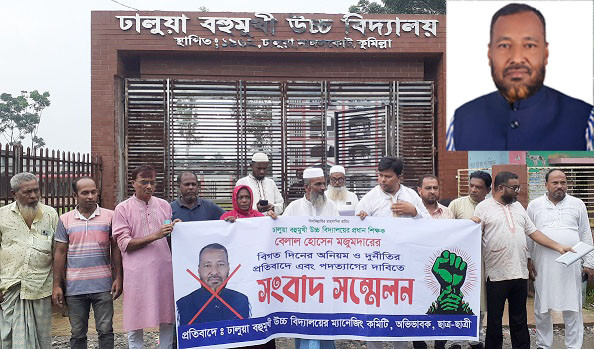 কুমিল্লার নাঙ্গলকোট উপজেলার ঢালুয়া উচ্চ বিদ্যালয়ের প্রধান শিক্ষক বেলাল হোসেন ২০১৬ সালে প্রধান শিক্ষকের পদে নিয়োগের জন্য ১২ লাখ টাকা ঘুষ দিয়ে চাকরি নেন। পরে স্কুলের বিভিন্ন পদে নিয়োগ ও শিক্ষার্থীদের প্রণোদনাসহ স্কুলের তহবিল থেকে বিভিন্ন কারচুপি ও ভুয়া ভাউচার দিয়ে অর্থ আত্মসাতের অভিযোগ উঠেছে। এ নিয়ে প্রধান শিক্ষকের পদত্যাগ দাবি করেছে স্কুলের শিক্ষার্থী ও সাধারণ জনতা। এ দাবিতে স্কুলের মূল ফটকের সামনে সংবাদ সম্মেলন ও মানববন্ধন এবং উপজেলা নির্বাহী বরাবর স্মারকলিপি প্রধান করা হয়।