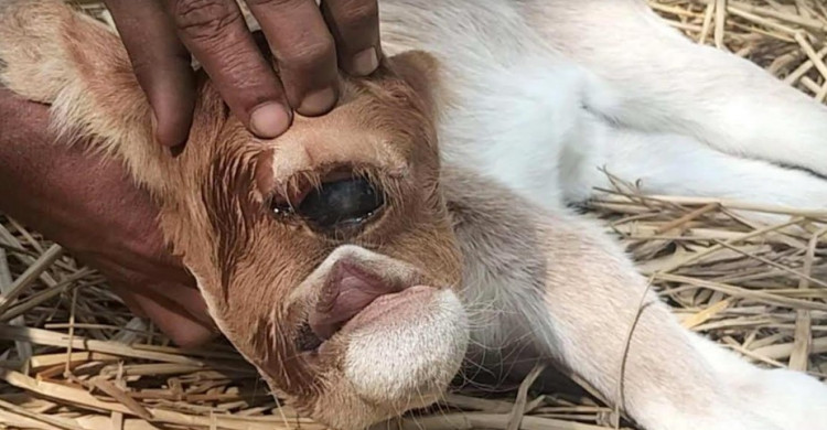 মাথার ওপর কপালে একটি চোখ। নাক নেই, মুখ দিয়ে শ্বাস-প্রশ্বাস নিচ্ছে। অবাক করার মতো বিষয় হলেও এমনি এক গরুর বাছুর জন্ম নিয়েছে। এমন নজিরবিহীন ঘটনা ঘটেছে নেত্রকোনার দুর্গাপুর উপজেলায়। বিষয়টি জানাজানি হলে এলাকায় চাঞ্চল্যের সৃষ্টি হয়। বাছুরটি দেখতে বিভিন্ন এলাকা থেকে মানুষ এসে ভীর জমাচ্ছেন সেখানে। উপজেলার চন্ডিগড় ইউনিয়নের প্রত্যন্ত অঞ্চল পশ্চিম রগজোর গ্রামের কৃষক আবু হানিফের বাড়িতে এ বাছুরটির জন্ম হয়।
