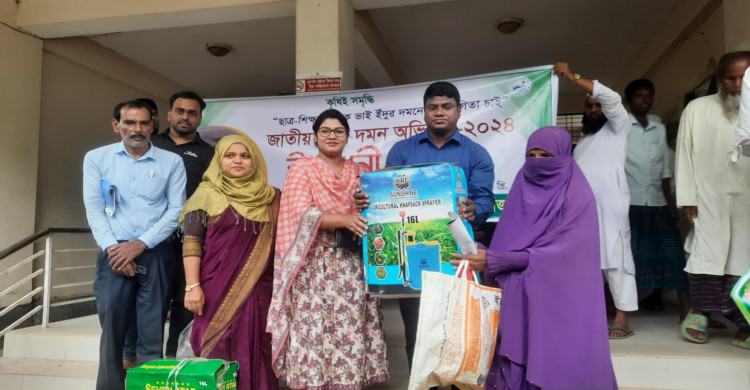 ‘ছাত্র-শিক্ষক-কৃষক ভাই, ইঁদুর দমনে সহযোগিতা চাই’ প্রতিপাদ্যকে সামনে রেখে সিরাজগঞ্জের কামারখন্দ উপজেলায় জাতীয় ইঁদুর দমন অভিযানের উদ্বোধনী অনুষ্ঠান ও ২০২৪-২৫ অর্থবছরে রবি মৌসুমে সরিষা, গম, ভুট্টা, চিনাবাদাম, শীতকালীন পেঁয়াজ, মসুর, খেসারি, অড়হড় উৎপাদন বৃদ্ধির লক্ষ্যে কৃষি কর্মসূচির আওতায় ক্ষুদ্র ও প্রান্তিক পর্যায়ের কৃষকদের মাঝে বিনামূল্যে সার ও বীজ বিতরণ করা হয়েছে।