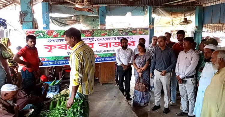 সবজি বাজারের সিন্ডিকেট ঠেকাতে কৃষকদের পণ্য বিক্রি ও ক্রেতাদের স্বল্পমূল্যে সবজিসহ কৃষিপণ্য সরাসরি ক্রয়-বিক্রয় করতে নেত্রকোনার দুর্গাপুরে উদ্বোধন করা হয়েছে কৃষকের বাজার। মঙ্গলবার (২৯ অক্টোবর) সকালে পৌর শহরের মেছুয়া বাজার এলাকায় উপজেলা প্রশাসনের আয়োজনে ও বৈষম্যবিরোধী ছাত্র আন্দোলনের শিক্ষার্থীদের সহযোগিতায় এ কার্যক্রমের উদ্ধোধন করা হয়।