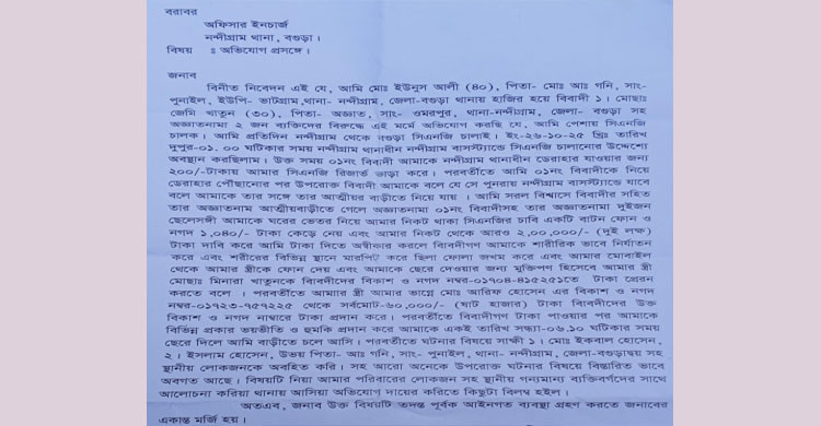 নন্দীগ্রামে সিএনজি চালককে অপহরণ ও মুক্তিপণ নিয়ে ছেড়ে দেওয়ার অভিযোগ