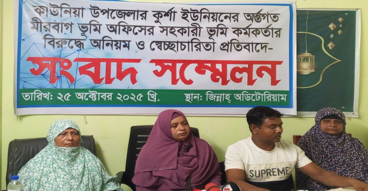 কাউনিয়ায় সহকারী ভূমি কর্মকর্তার বিরুদ্ধে ঘুষের অভিযোগে সংবাদ সম্মেলন