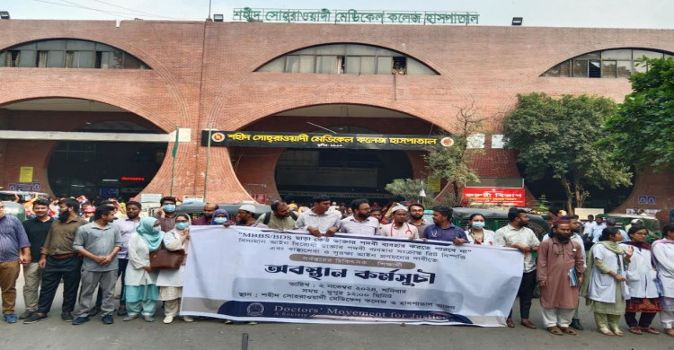 বিদ্যমান আইন বিরোধী ডাক্তার পদবী ব্যবহার সংক্রান্ত রিট (২৭৩০/২০১৩)নিষ্পত্তি এবং স্বাস্থ্যসেবা ও সুরক্ষা আইন প্রণয়নের দাবীতে শহিদ সোহরাওয়ার্দী হাসপাতালের ডাক্তারগণ হাসপাতালের সামনে অবস্থান কর্মসূচি পালন করেন।