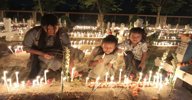 স্বজনদের কবরগুলোর উপরে জ্বলছে শত শত মোমবাতি, এতে ছড়িয়েছে রুপালী আলো। সুগন্ধি ছড়াচ্ছে সহস্র আগরবাতির ধুঁয়া। কবরগুলোতে ছিটিয়ে দেওয়া হয়েছে তাজা ফুলের পাঁপড়ি। প্রিয়জনেরা তাদের নিজ নিজ স্বজনের কবরের পাশে দাঁড়িয়ে মৃত ব্যক্তির আত্মার চিরশান্তির জন্য প্রার্থনা করছেন।