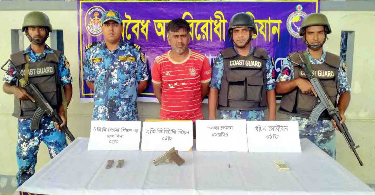 এসময় তাকে তল্লাশি করে ১টি ৯ এম এম পিস্তল, ১টি তাজা গুলি সহ ২টি খালি ম্যাগাজিন জব্দ করে আভিযানিক দল। ওই যুবক সাতক্ষীরা সদরের মুন্সিপাড়া এলাকার মৃত লিয়াকত হোসেনের ছেলে।