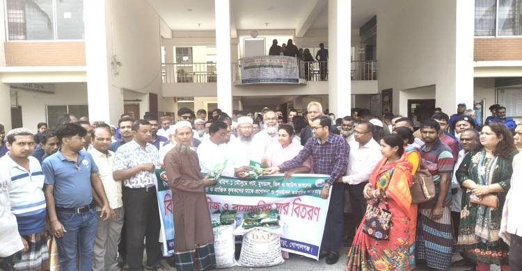 কোটালীপাড়ায় প্রান্তিক কৃষকদের মাঝে বীজ ও সার বিতরণ