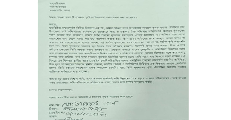 মাগুরা সদর উপজেলা অফিসারকে অপসারণের দাবিতে মহাপরিচালক বরাবর আবেদনপত্র দাখিল