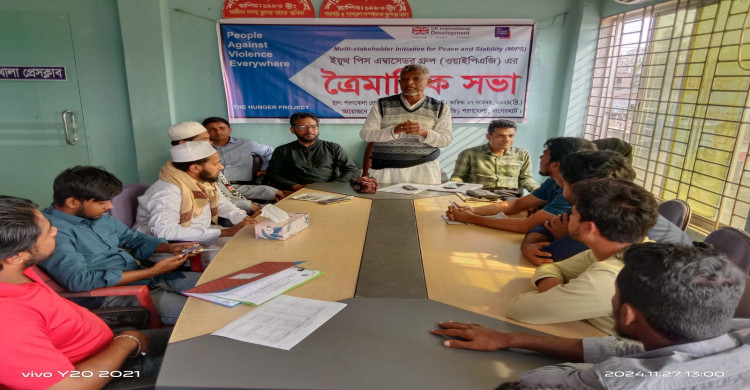 আজ ২৭ নভেম্বর ২০২৪ তারিখ রোজ বুধবার প্রেসক্লাব সভাকক্ষে সকাল ১১ টায় দি হাঙ্গার প্রজেক্ট বাংলাদেশ ও এমআইপিএস প্রকেল্পের সহযোগিতায় ইয়ুথ পিস আ্যাম্বাসেডর গ্রুপ (ওয়াইপিএজি) এর ত্রৈমাসিক সভা অনুষ্ঠিত হয়।