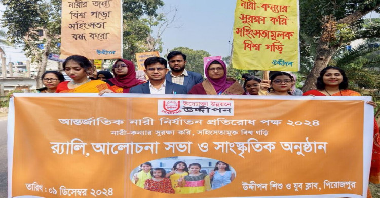 পিরোজপুরে উদ্দীপনের উদ্যোগে আন্তর্জাতিক নারী নির্যাতন প্রতিরোধ পক্ষ ২০২৪ পালন