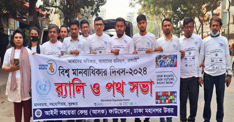 বিশ্ব মানবাধিকার দিবস আজ মঙ্গলবার (১০ ডিসেম্বর)। ‘আমাদের অধিকার, আমাদের ভবিষ্যৎ এখনই’ এ প্রতিপাদ্যকে সামনে রেখে পৃথিবীর অন্যান্য দেশের সঙ্গে বাংলাদেশেও দিবসটি পালন করা হয়েছে। আইনী সহায়তা কেন্দ্র (আসক) ফাউন্ডেশন, ঢাকা মহানগর উত্তরের আয়োজনে র্যালী, পথ সভা সহ নানা কর্মসূচির মাধ্যমে দিবসটি পালন করেছে।