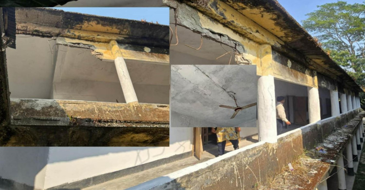 দুমকীতে ঝুঁকিপূর্ণ ভবনে চলছে শিক্ষার্থীদের পাঠদান