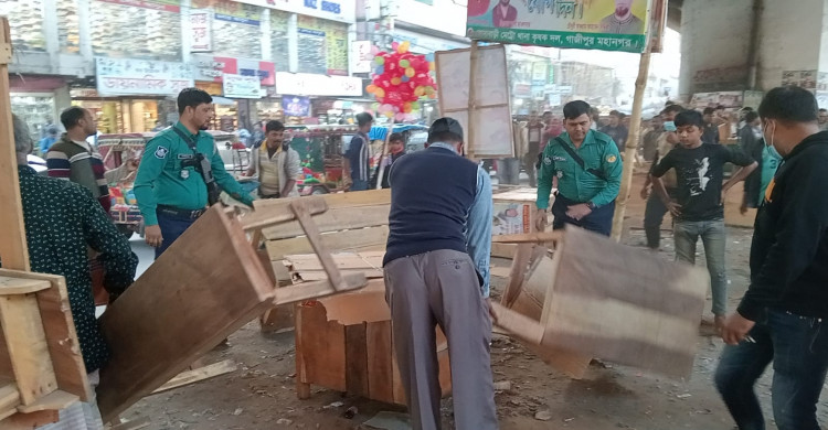 কোনাবাড়ীতে ফুটপাতে উচ্ছেদ অভিযান