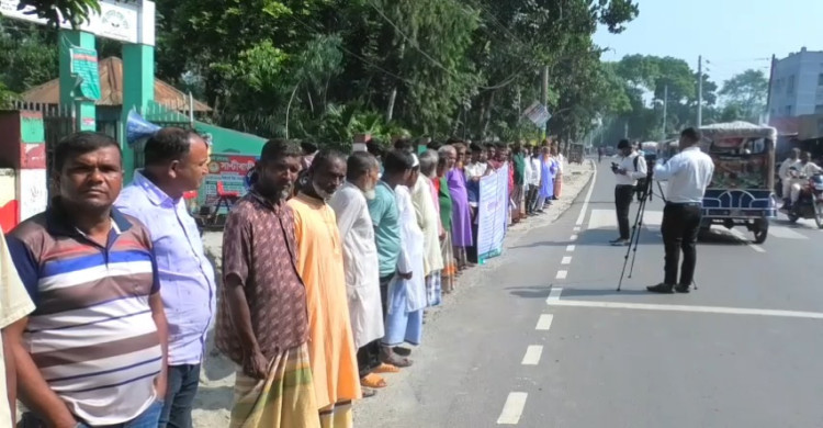 সাপ্টিবাড়ী ডিগ্রি কলেজে দুর্নীতি ও অনিয়মের অভিযোগ, রফিকুল আলমের চাকরিচ্যুতি দাবিতে মানববন্ধন