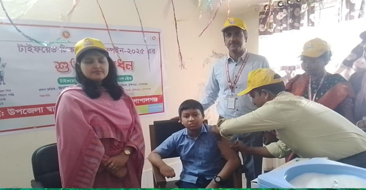 টুঙ্গিপাড়ায় শুরু হয়েছে টাইফয়েড ভ্যাকসিন টিকাদান কর্মসূচি
