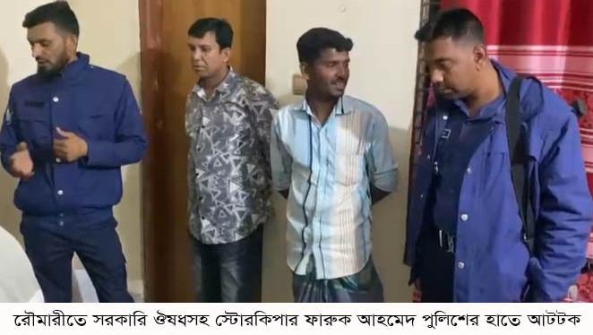 রৌমারী উপজেলা স্বাস্থ্য কমপ্লেক্সের ঔষধ পাচারকালে স্টোর কিপার আটক ফারুক আটক