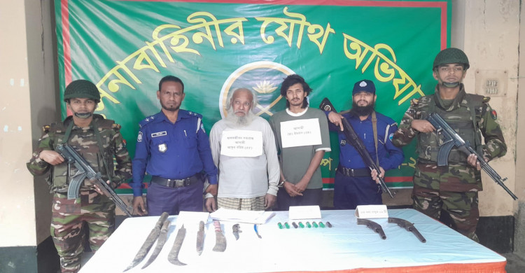 সোমবার (৩০) ডিসেম্বর গভীর রাত থেকে দুপুর পর্যন্ত উপজেলার বারশত ইউনিয়নের পশ্চিমচাল গ্রামের সুলতান চেয়ারম্যান এর বাড়িতে এ অভিযান পরিচালনা করা হয়। এসময় তল্লাশি করে দুইটি দেশীয় এক নলা বন্দুক, ৪ টি চুরি, ২ টি দা ও ৮ রাউন্ড গুলি উদ্ধার করা হয়।