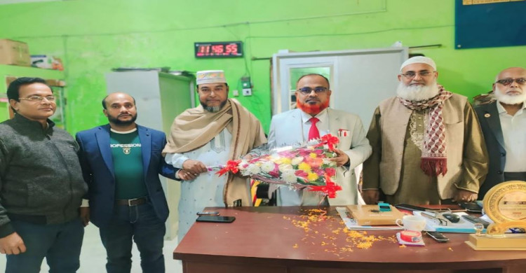 ভারপ্রাপ্ত প্রধান শিক্ষককে ফুলের শুভেচ্ছা