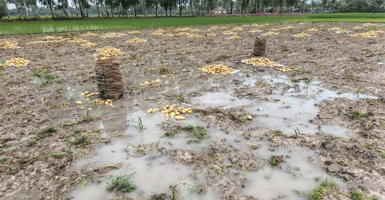অসময়ের বৃষ্টিতে পানির নিচে আলু ক্ষেত, দাম ধস—দিশেহারা জয়পুরহাটের কৃষক