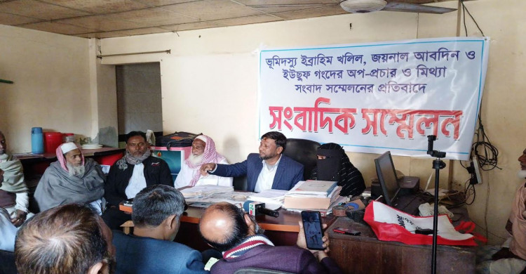 নোয়াখালী কবিরহাট উপজেলার ধানসিঁড়ি ইউনিয়ের ৫নং ওয়ার্ডের উত্তর জগদানন্দ গ্রামের ভূমি দস্যু ইব্রাহিম খলিল, জয়নাল আবদিন ও ইউসুফ গংদের অপপ্রচার ও মিথ্যা সংবাদ সম্মেলনের প্রতিবাদে সাংবাদিক সম্মেলন করেছে ভূক্তভোগী পরিবার।