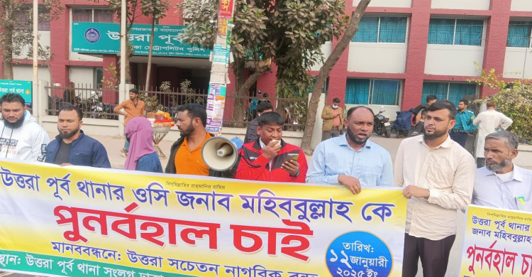 উত্তরা পূর্ব থানার ওসি মহিববুল্লাহ কে পূর্ণবহালের দাবিতে মানববন্ধন