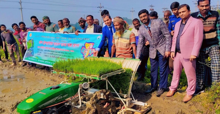 গত ১৪ জানুয়ারি শালিখা উপজেলা কৃষি সম্প্রসারণ অধিদপ্তরের আয়োজনে চুকিনগর গ্রামে ৫৬ জন কৃষকের ৫০ একর জমিতে সমবায় ভিত্তিক চাষাবাদের কর্মসূচি সমলয় চাষাবাদে রাইচ ট্রান্সপ্লান্টারের মাধ্যমে ধানের চারা রোপনের উদ্বোধন করেন মাগুরার জেলা প্রশাসক অহিদুল ইসলাম। কৃষি সম্প্রসারণ অধিদপ্তর মাগুরার উপপরিচালক ড. ইয়াছিন আলীর সভাপতিত্বে অনুষ্ঠানে বিশেষ অতিথি হিসেবে উপস্থিত ছিলেন উপজেলা নির্বাহী অফিসার হাসিনা মমতাজ। অনুষ্ঠানে স্বাগত বক্তব্য প্রদান করেন উপজেলা কৃষি অফিসার কৃষিবিদ আলমগীর হোসেন। এসময় সমলয় চাষাবাদে প্রায় ১০০ জন কৃষককে মাঠ পর্যায়ে বীজতলা তৈরিসহ জমিতে রাইস ট্রান্সপ্লান্টার মেশিনের মাধ্যমে ধানের চারা রোপণের বিভিন্ন কৌশল সম্পর্কে অবহিত করা হয়। উন্নত কৃষি প্রযুক্তির ব্যবহারে কৃষকদের শ্রম ও সময়ের সঠিক ব্যবহারের মাধ্যমে আগামীতে উপজেলায় কৃষি কাজে সমলয় পদ্ধতিতে চাষাবাদ আরও বৃদ্ধি পাবে বলে মনে করছেন সংশ্লিষ্টরা। প্রথম পর্যায়ে উচ্চ ফলনশীল ব্রি ধান ৯২ ধানের বীজ কৃষকদের মাঝে প্রদান করা হয়েছে, এ জন্য ৪৫০০ ট্রে তে ধানের বীজতলা তৈরি করা হয়েছে যা রাইস ট্রান্সপ্লান্টার মেশিনের মাধ্যমে জমিতে রোপণ এবং কম্বাইন হারভেস্ট মেশিনের মাধ্যমে জমির ধান কর্তন করা হবে।