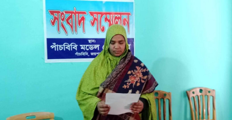 ১৯ (জানুয়ারি) দুপুর ০২.০০ ঘটিকার সময় পাঁচবিবি উপজেলা মডেল প্রেসক্লাবে ভুক্তভোগী মোছাঃ সহিদা বেগম সংবাদ সম্মেলন লিখিত বক্তব্য প্রদান করেন। ভুক্তভোগী মোছাঃ সহিদা বেগম, পাঁচবিবি উপজেলার আওলাই ইউনিয়নের ক্ষিদিরপুর গ্রামের মোঃ নজরুল ইসলামের স্ত্রী।