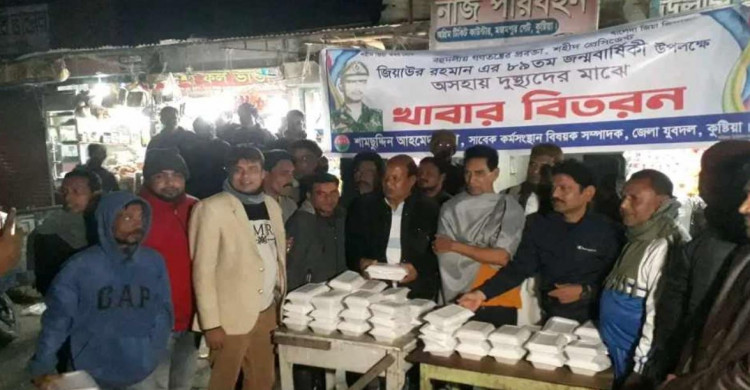 শ'হীদ রাষ্ট্রপতি জিয়াউর রহমানের জন্মবার্ষিকীতে কুষ্টিয়ায় ছি'ন্নমূল মানুষের মাঝে খাবার বিতরন