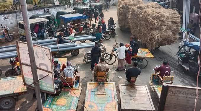 তানোরে বাস স্ট্যান্ড না থাকায় যানজটে পথচারীদের চরম দুর্ভোগ