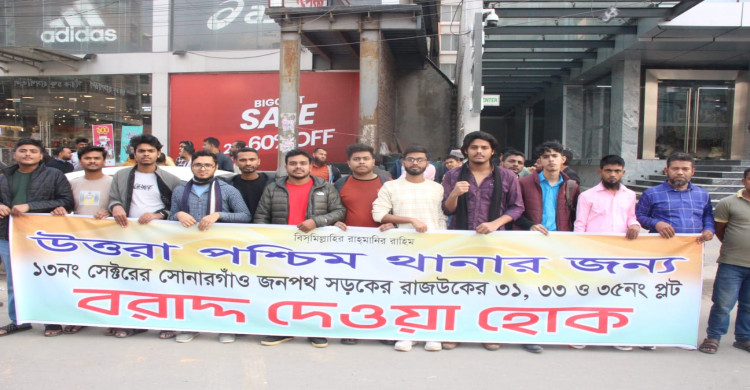 থানার স্থায়ী ভবন নির্মাণে প্লট বরাদ্দের দাবিতে উত্তরাবাসীর মানববন্ধন