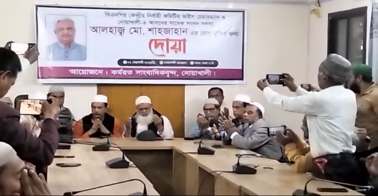 কেন্দ্রীয় বিএনপির ভাইস চেয়ারম্যান ও নোয়াখালী ০৪ আসনের সাবেক সংসদ সদস্য মো. শাহজাহানের রোগ মুক্তি ও সুস্থতা কামনায় নোয়াখালী প্রেস ক্লাবে দোয়ার আয়োজন করা হয়।