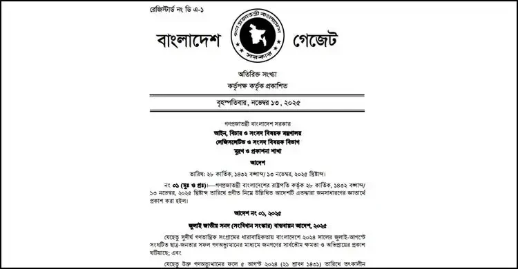জুলাই সনদ বাস্তবায়ন আদেশের গেজেট জারি